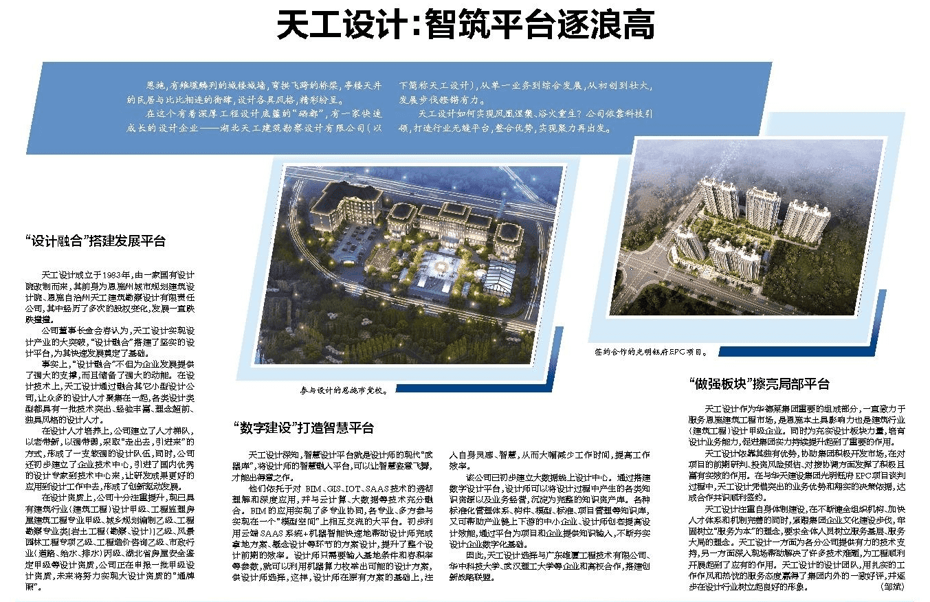天工設計喜獲湖北日報“智筑平臺逐浪高”贊譽