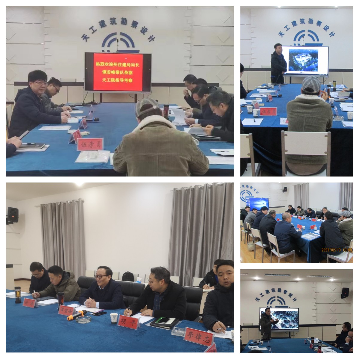 2023年2月13日上午,恩施州住建局局長(zhǎng)譚若峰、總工胡平等一行蒞臨華德萊集團(tuán)旗下的湖北天工建筑勘察設(shè)計(jì)有限公司(以下簡(jiǎn)稱(chēng)“天工院”)恩施總部考察指導(dǎo)。華德萊集團(tuán)董事長(zhǎng)金會(huì)容主持并攜各相關(guān)負(fù)責(zé)人參會(huì)。