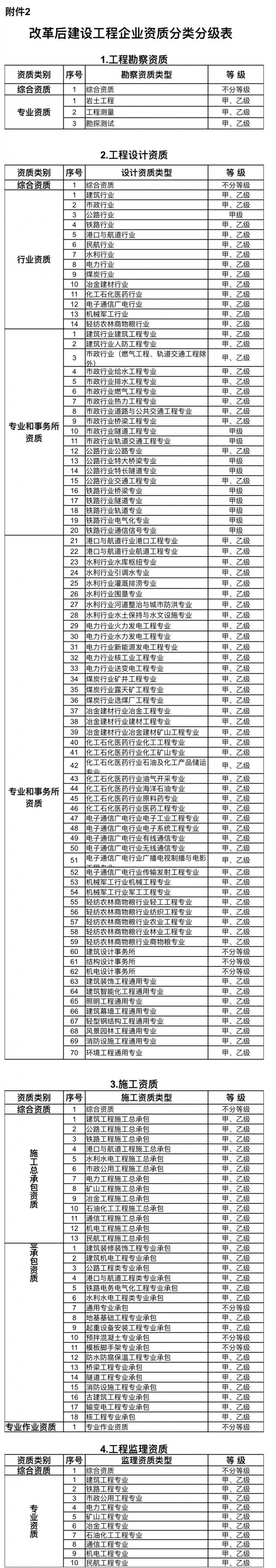 2.改革后建設工程企業資質分類分級表