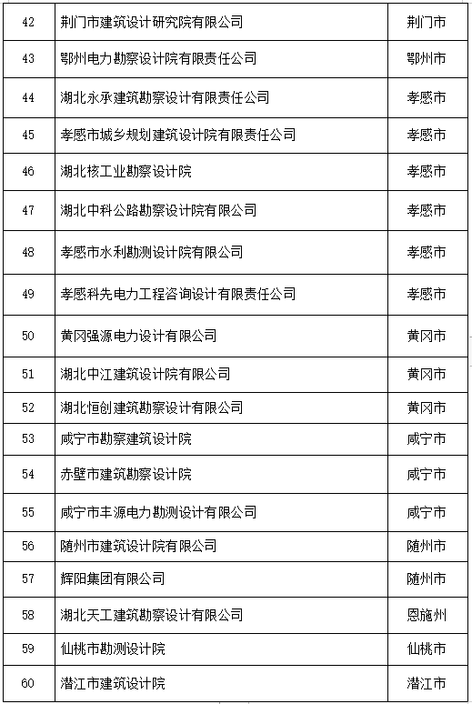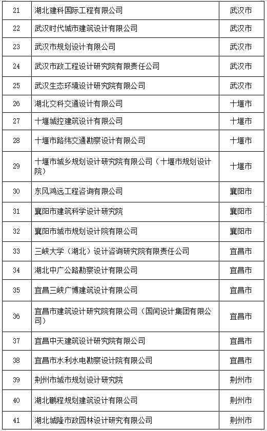 湖北省工程設計和施工雙資質重點培育企業名單